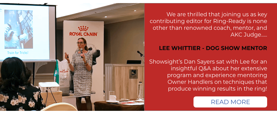 Click on the above picture to see the interview with Lee Whittier in Ring-Ready Home of the Owner Handler by Showsight